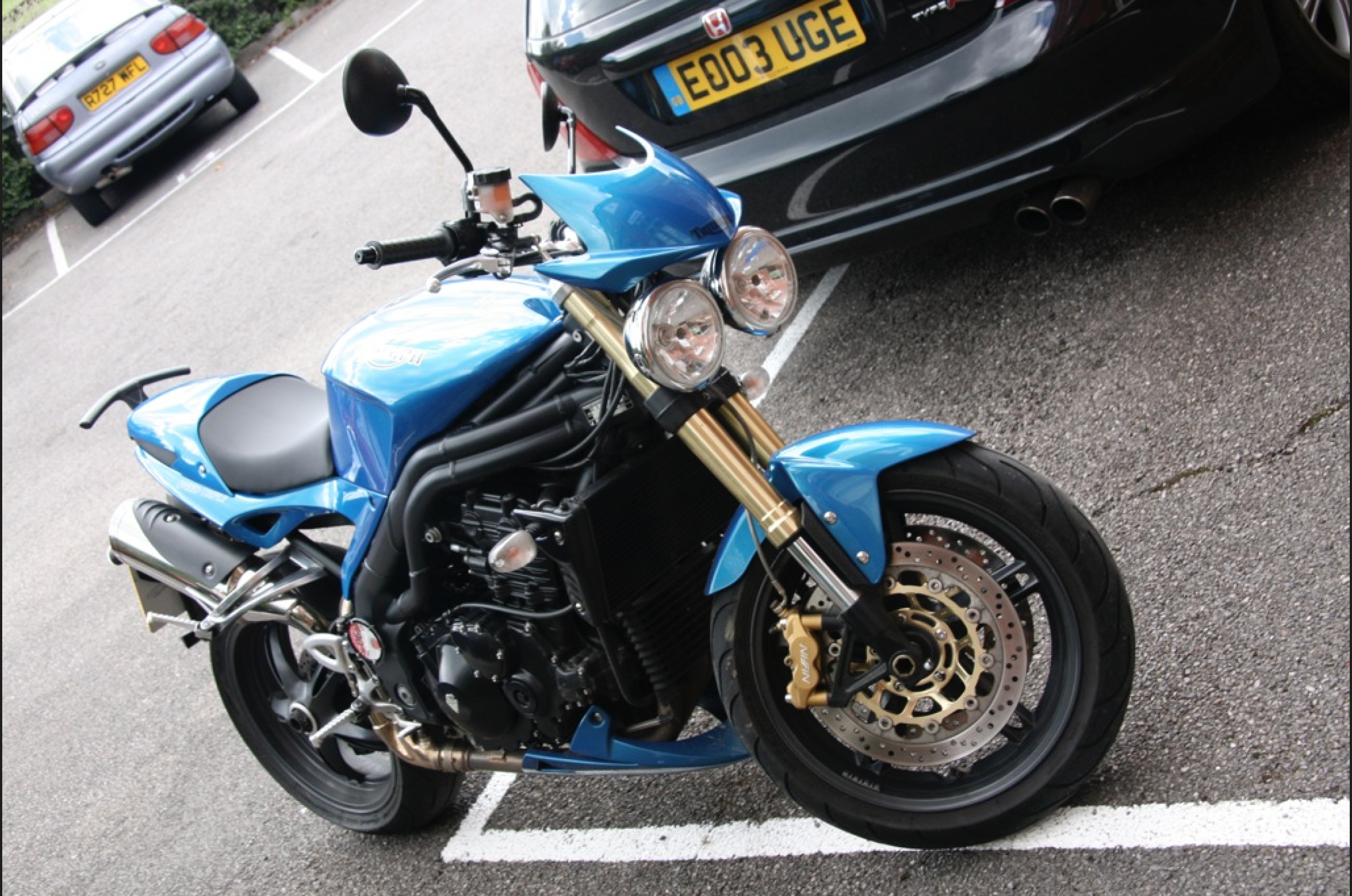 OK, so I dont actually own a Speed Triple any more. It was smashed up by what can only be described as a total moron in a Nissan Duke. I really hate Nissan Dukes - not because one happened to smash my bike up but because they encapsulate everything thats irresponsible in car design - they are go anywhere urban trucks masquerading as cars, designed to get over speed humps as quickly as possible and keep you safe from other traffic higher up. Its basically a 4x4 for the city - most of the negatives bits about 4x4s where other road users are concerned and still keeping the speed and convenient bits of a car. At least proper 4x4 drivers have the inconvenience of having to park a really large vehicle thats awkward. Anyway - you get the picture - I don’t like them or the drivers that use them.