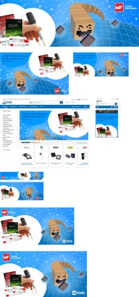 Web graphics which have been produced from a central design as shown above, in these instances used for the main site carousel. Created in Illustrator.